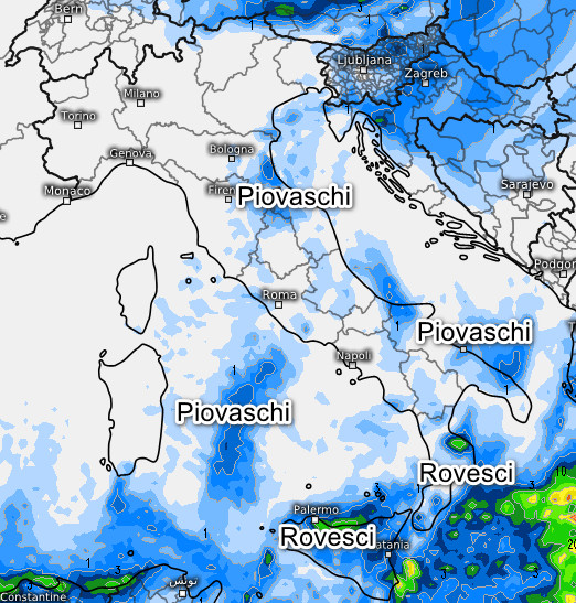 Infine, questa è la sommatoria delle precipitazioni attese in Italia nella giornata di mercoledi 15 gennaio: