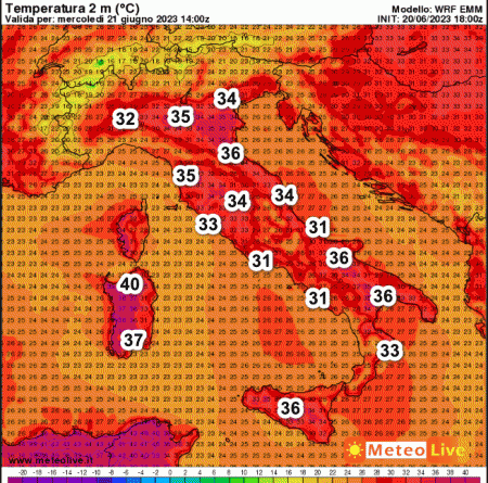 Tra oggi e domani il promontorio africano raggiungerà la sua massima potenza, determinando caldo molto intenso da nord a sud. Venerdi 23 giugno la cupola bollente dovrebbe invece spostarsi verso sud ed al nord arriveranno alcuni temporali che anticiperanno un calo delle temperature che nel fine settimana riguarderà tutta l’Italia. Non aspettiamoci però il fresco, ma solo un caldo più normale.
