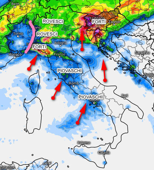 Facciamo ora un passo indietro ed analizziamo le piogge attese in Italia nella giornata odierna, martedi 1 ottobre: