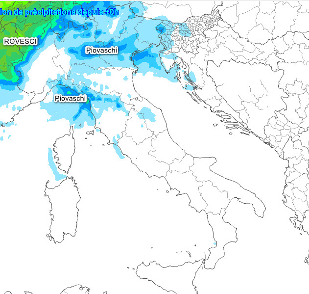 Forti rovesci tra la Liguria centro-orientale e l’alta Toscana. Rovesci anche al nord-est ad eccezione della Romagna con piogge intense sul Friuli. Saltato dalle piogge gran parte del Piemonte e la Liguria occidentale. Piovaschi lungo il Tirreno fino alla Campania e le aree interne del centro, per il resto tempo asciutto. Rinforzo dei venti tra sud e sud-ovest ed aumento temporaneo delle temperature al meridione.
