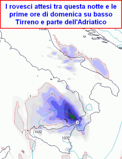 SITUAZIONE: una perturbazione innocua, composta in prevalenza da nubi medio alte, sta transitando sulla Penisola e solo lungo i crinali alpini di confine orientali potrebbe dar luogo a qualche debole nevicata. Essa sarà però seguita da aria un po’ più fredda che scivolerà lungo l’Adriatico e al sud nel corso della prossima notte determinando instabilità. Nel contempo da ovest va avanzando un campo di alta pressione che tenderà a coinvolgere tutto il Paese da lunedì.