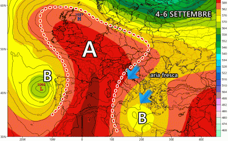 Ma con l’avvio della nuova settimana arrivano anche delle discrete novità. Come più volte accennato nei giorni scorsi, è in arrivo un nucleo fresco proveniente dal Nord-Est dell’Europa, il quale attraverserà i Balcani e il basso Mediterraneo, lambendo anche la nostra penisola. Questa goccia fresca in retrogressione da est apporterà un calo delle temperature, anche abbastanza vistoso, su molte delle nostre regioni, soprattutto quelle del lato Adriatico e del Sud: