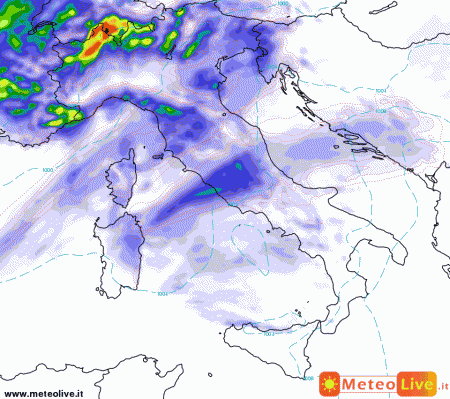 SITUAZIONE: un canale depressionario si è scavato nel Mediterraneo e determina condizioni di instabilità sulle regioni centrali e meridionali e solo marginalmente al nord. Rovesci e temporali sparsi sono presenti già stamane su alcuni settori del sud e in giornata tenderanno a ripresentarsi un po’ ovunque, compresa la Sicilia, più isolati ma possibili i fenomeni su Toscana, Umbria e Marche, assenti in Sardegna, mentre al nord i fenomeni risulteranno relegati alla fascia montana e risulteranno isolati, qui una carta precipitativa riassuntiva della giornata odierna secondo il nostro modello: