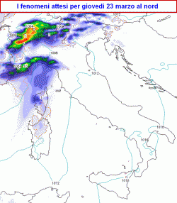 DEPRESSIONE: l’affondo depressionario come detto sempre procedere in direzione della Penisola Iberica ma il ramo ascendente della saccatura collegata al vortice dovrebbe spingere almeno un corpo nuvoloso ad attraversare il nostro settentrione, provocando piogge, segnatamente nella giornata di giovedì 23 marzo. In seguito sembra che la depressione si areni ulteriormente sulla Spagna e l’Italia venga abbracciata da un cuneo anticiclonico di matrice africana con tempo in graduale miglioramento tra venerdì e domenica. Naturalmente l’attendibilità oltre giovedì è ancora molto bassa.