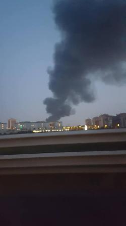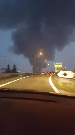 Vasto incendio in serata a Milano, zona Cologno Monzese. Colonna di fumo nero e denso ben visibile.