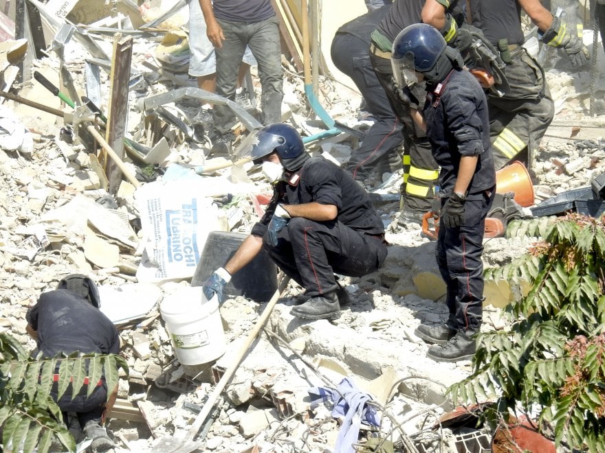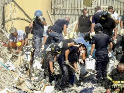 Diverse squadre di Vigili del fuoco, polizia e volontari sono a lavoro fra le macerie per recuperare le persone coinvolte nel crollo. È una corsa contro il tempo. Le prime parole arrivano dal proprietario dell’edificio che si trova proprio di fronte a quello crollato : "Era da poco rientrato mio figlio. Potevano essere le 6.20 di stamattina – dice tra le lacrime il vicino di casa – a un certo  punto abbiamo sentito un rumore come se stessero cadendo bottiglie in quantità. Ci siamo affacciati  e c’era una nuvola di terra. Non si capiva ancora cosa fosse successo. Poi ci sono state le urla degli inquilini della palazzina confinante che è rimasta in piedi. A quel punto abbiamo capito e abbiamo chiamato i soccorsi". Il quinto piano della palazzina è  praticamente scomparso. Del quarto e del terzo restano in  piedi poche pietre.