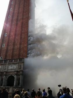 Una densa colonna di fumo ha avvolto il Campanile della Basilica di San Marco. Sconcerto e paura tra i turisti e i cittadini, per quello che sembrava un incendio su uno dei campanile più famosi al mondo.
