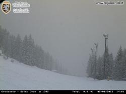 Qui lo spessore del manto bianco è inferiore rispetto alla località svizzera sopra citata, ma la neve continua a cadere in maniera abbastanza copiosa sulla zona.