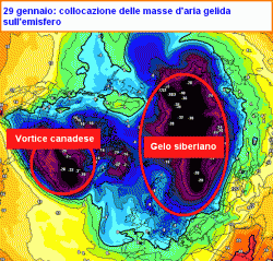Dalle mappe a proiezione emisferica si può benissimo notare il disfacimento di quel po’ di gelo che aveva guadagnato il nord Europa nelle ultime settimane. Il freddo sull’Europa occidentale e l’Italia, semmai dovesse arrivare, ci prenderà da nord-ovest, dall’Atlantico, un freddo marittimo, rilasciato dall’altro grande protagonista di questa stagione: il vortice canadese.