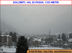 Eccoci nell’area delle Dolomiti e più precisamente in Val di Fassa, a 1325 metri di quota. Non nevica come sulle Alpi Lombarde o in Piemonte, ma il bianco al suolo è ben presente e la nevicata sta continuando, seppure in maniera moderata.
