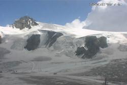 Ghiacciai in affanno anche in Francia, Svizzera ed Austria, sottoposte alla medesima azione anticiclonica. E i paradisi dello sci estivo? Per ora solo le piste poste alle quote più elevate tra Zermatt e Cervinia, ovvero il ghiacciaio del Plateau Rosà (nell’immagine qui a fianco), pur "annerito" e solcato da grossi crepacci, riesce a contenere i danni nella parte più alta, ovvero intorno ai 3800 metri, ma solo grazie alle quote elevate del comprensorio.
