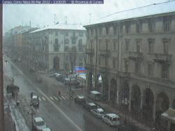 Ecco invece la situazione attuale. Sulla città nevica copiosamente e la temperatura è attorno allo zero.