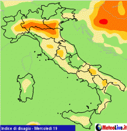 Ma dove soffiremo di più questa prima calura stagionale? Guardate la figura in alto: grande afa su tutta l’area padana, dove la miscela tra temperature elevate e alto tasso di umidità darà luogo a condizioni di disagio malagevoli. I valori percepiti più elevati sono attesi in particolare in Emilia e nell’entroterra romagnolo meteolive.leonardo.it/speciali/MAPPE/73/Indice-di-disagio-estivo/33057/.