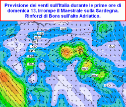 La presenza di un campo di pressioni ancora troppo alte sulla penisola Iberica e su parte della Francia, obbligherànno una perturbazione di origine nord-atlantica a seguire un percorso un pò insolito. Nella notte tra sabato 12 e domenica 13 una sventagliata temporalesca coinvolgerà diversi settori del nord Italia. La ventilazione che caratterizzerà il transito della perturbazione sul Paese, saranno venti di Grecale, Tramontana e Maestrale.