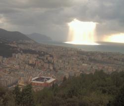 Un tuffo sul mare della Costa Azzurra ed ecco che il nucleo di aria polare marittima si presenta all’appello sui cieli italiani. La Liguria in primo luogo è la regione che si affaccia sui contrasti più netti e che per questo vanta cieli davvero spettacolari. Guardate l’immagine qui a fianco, riferita alla città di Genova.