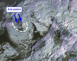 Intanto l’aria fredda, come possiamo notare dall’immagine Meteosat qui a fianco, sta già correndo verso la Sardegna.
