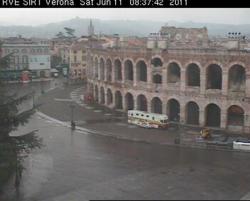 Vi mostriamo qui di fianco sia la posizione della cellula vista dal satellite, sia la webcam di Verona, dove le precipitazioni, al momento del salvataggio dell’immagine, erano appena cessate.