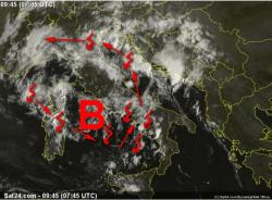 Attorno ad esso, ruotano i sistemi nuvolosi, che  presentano prevalente carattere temporalesco.