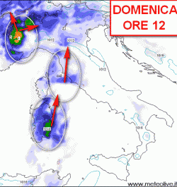 Non staranno però a guardare la Sardegna e le regioni del versante tirrenico. Qui arriveranno nuclei temporaleschi secondari (secondari per ampiezza, non per intensità) che renderanno il tempo assai instabile.