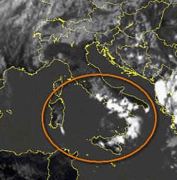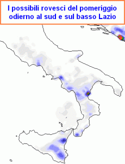 Le correnti spingono i nuclei temporaleschi e soprattutto le incudini dei cumulonembi verso la fascia costiera tirrenica meridionale.
