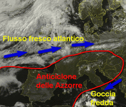 Più a sud vige invece la goccia fredda che da giorni sta tormentando il tempo del meridione e delle Isole con temporali che nel pomeriggio tendono ad estendersi anche ad alcune zone del centro (zone interne e Tirreno).