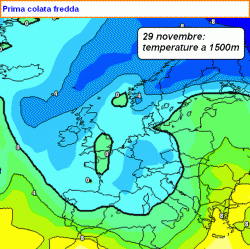 Ora, per sapere se freddo sarà, dobbiamo centrare esattamente la posizione dell’asse di questo vortice. Così come sono messe ora le simulazioni, prevediamo che tra il 29 e il 30 l’aria fredda inizierà a farsi sentire al nord e al centro, a partire dalle regioni dell’alto Tirreno. Il sud e le regioni centrali adriatiche invece subiranno un temporaneo aumento, per venti di Scirocco, in virtù di quanto esposto sopra.