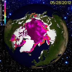 Per l’Artico i nostri dubbi relativi alla tenuta del ghiaccio giovane erano fondati: con l’arrivo della primavera anche alle alte latitudini, il sottile strato di ghiaccio che aveva tentato di riappropriarsi della superficie oceanica polare sta affrontando le sue prime serie difficoltà. I risultati non sono sfuggiti alle strumentazioni satellitari che hanno visto un crollo a piombo dell’estensione della banchisa nei mesi di aprile e maggio.