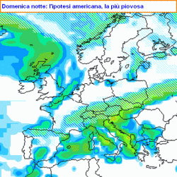 Restano invariati invece le posizioni della colata fredda e della progressione perturbata secondo la maggior parte degli altri modelli (55-60% di probabilità), con termiche complessivamente più basse ma meno precipitazioni lungo le Alpi ed un certo miglioramento atteso al nord entro domenica pomeriggio.