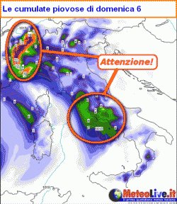 Il maltempo ai raggi X, ecco le cumulate piovose previste per domenica