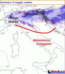 Temporali residui possibili al nord-est, in trasferimento verso le regioni centrali nel pomeriggio. Fenomeni più sporadici in Toscana. Bello al sud e sulle Isole Maggiori. Venti in rinforzo ovunque e sensibile calo delle temperature a partire dal nord.