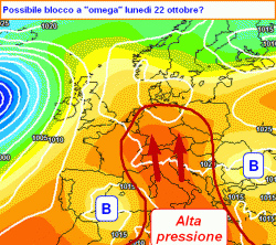 Il vortice guida di questa perturbazione non riuscirà poi ad avanzare verso ilcuore del Mediterraneo, poichè frenato da una azione di blocco da parte di un promontorio di alta pressione derivato in risalita sui settori orientali del nostro Continente. Tale azione di blocco non è escluso possa guadagnare terreno anche verso la nostra Penisola (vedi figura qui a fianco) nella terza decade di ottobre, predisponendo ad una fase di tempo più stabile (e nebbioso in pianura) anche sull’Italia.