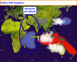 Quest’ultimo infatti regola la presenza di un dipolo termico sulle acque dell’oceano Indiano, fornitore primario dell’umidità che poi genera le piogge monsoniche in India e funziona come descritto nelle figure.