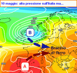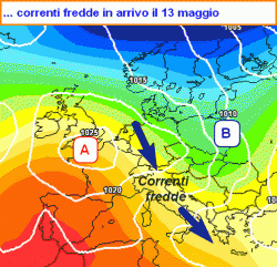 Frattanto però inizierà il braccio di ferro con una nuova saccatura che dal nord Europa tenterà di forzare il varco alpino per entrare sul Mediterraneo. Al momento pare che proprio l’arco alpino sarà l’ago della bilancia che veicolerà questo nuovo flusso freddo e instabile. Dove? Alla luce delle ultime simulazioni sembrano maggiormente coinvolte le regioni di nord-est e quelle centro-meridionali peninsulari, segnatamente le adriatiche tra sabato 12 e domenica 13 maggio.
