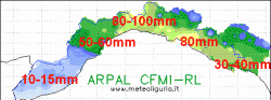 Fino a 100mm in 24 ore sul settore centrale della regione, ma con punte anche superiori nelle zone interne.