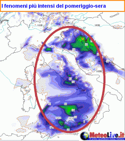 I fenomeni interesseranno dapprima il settentrione èer poi spostarsi anche verso il centro e il sud. I fenomeni più intensi attesi in mattinata sulla Liguria, nel pomeriggio in Toscana e in serata un po' su tutto il centro e la Sicilia.
