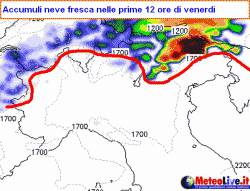 Nel pomeriggio ancora rovesci di neve con limite fin verso i 1000-1200 metri lungo tutti i settori di confine e zone adiacenti di Alto Adige e Friuli Venezia Giulia, 1300-1400 metri sulle restanti zone, ivi compresa la fascia prealpina. I fenomeni andranno progressivamene esaurendosi verso sera per l’allontanamento della perturbazione verso Austria e Slovenia.