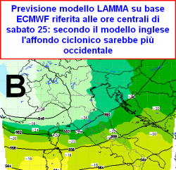 Questa nuova linea di tendenza è intravista soprattutto dal modello inglese ECMWF, il quale seppure di poco, prevede un affondo ciclonico leggermente più organizzato sul territorio francese. Il modello americano GFS persiste invece nella tendenza già annunciata con gli aggiornamenti relativi a ieri. Una linea di tendenza che prevede l’isolamento più orientale della depressione. In tal modo sarebbe da aspettarsi un coinvolgimento più diretto dei soli settori orientali del nord a scapito di quelli occidentali. Al momento Meteolive ritiene più probabile l’ipotesi "orientale" a scapito di quella occidentale.