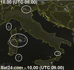 Qualche addensamento è presente sul nord della Sardegna, sulla Calabria, a nord-ovest della Corsica ed in prossimità del Lago di Garda.