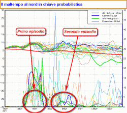 Il grafico in particolare si riferisce alle regioni nord-occidentali, dove anche probabilisticamente, sono previsti i picchi precipitativi più rilevanti.