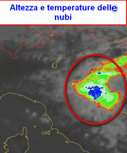 La zona nevralgica, come si nota dall’immagine satellitare a colori, sta interessando il Cesenate, dove le nubi presentano una temperatura sommitale prossima a -40°!