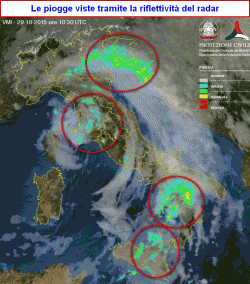 A dare manforte a quanto detto sopra, ecco la riflettività radar delle piogge in Italia.
