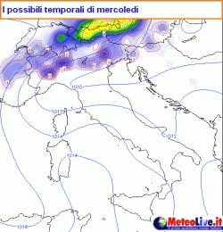 Coinvolte con maggior probabilità le province poste a nord del fiume Po. Mercoledì qualche temporale anche forte potrà interessare i settori altoatesini e quelli friulani. Più aperti i cieli invece al nord-ovest. Non sono previsti fenomeni sulle coste liguri e sull’Emilia Romagna, ad eccezione forse del Piacentino.