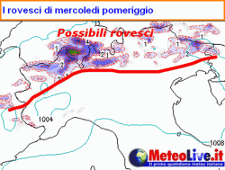 Su Valle d’Aosta, alto Piemonte, alta Lombardia, Trentino, Cadore e settore alpino carnico, specie tra pomeriggio e sera, non si esclude anche la possibilità di qualche rovescio o temporale. A tal proposito si guardi la mappa allegata qui a fianco dove sono rappresentati i rovesci previsti sempre dal nostro modello WRF-EMM per le ore pomeridiane di mercoledì 25.