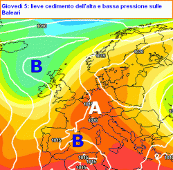 Situazione giovedì 5 settembre (+72h): ancora condizioni quasi estive sull’Italia, caldo e temperature massime fino a 30°C. Attenzione, però ad un nucleo di bassa pressione in avvicinamento dalle Baleari, che attiverà un flusso umido e molto instabile sulle Isole Maggiori, dove saranno possibili temporali. .