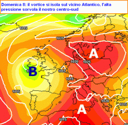 Situazione domenica 8 settembre (+144h): la saccatura rimane arenata sull’Europa occidentale, poichè l’alta pressione scandinava provvederà al taglio dei rifornimenti da parte della struttura madre. Correnti instabili attiveranno ulteriori condizioni di instabilità al settentrione, con qualche temporale possibile, soprattutto al nord-ovest. Sul resto del Paese correnti a curvatura anticiclonica garantiranno una tenuta del bel tempo, con solo alcuni banchi nuvolosi di passaggio senza conseguenze. Temperature superiori alla norma al centro, al sud e sulle Isole.