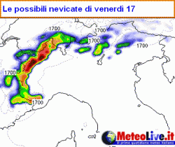 si manterrà mediamente intorno a 600-900 metri, anche se potrà fioccare a tratti anche a bassa quota, specie in Piemonte, dove il limite bianco potrà scendere a tratti anche fin verso i 300-400 metri.