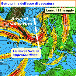 La pulsazione della Corrente a Getto in uscita dagli Stati Uniti, responsabile della rimonta anticiclonica prevista sul Mediterraneo occidentale tra il 10 e il 13 maggio verrà sostituita da un nuovo getto di vento che invece subentrerà dopo domenica 13 dalle latitudini canadesi promuovendo l'ingresso di una saccatura nord atlantica.