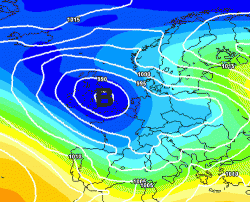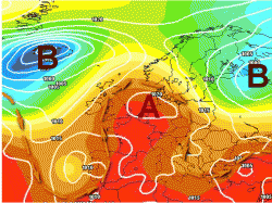 Ora è arrivato aprile e anche quest’onda anticiclonica ha segnato il passo progredendo verso levante. In Russia ora fa caldo per la stagione, qui invece piove spesso ed è tornata la neve anche a quote basse per il periodo. E’ perchè siamo stati raggiunti dall’onda ancora successiva, naturalmente depressionaria. Guardatela qui a fianco, bella pomposa là su tutte le nostre carte. E’ l’ora della pioggia, ma fino a quando?