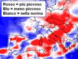 Analizzando le anomalie della piovosità previste in tale ambito, notiamo una lieve tendenza a precipitazioni più frequenti della norma sui settori di nord-est e al centro-sud. Il nord-ovest, per quanto anch’esso interessato dall’instabilità atmosferica, rimarrà a tratti riparato dalla catena alpina e vedrà un clima parimenti fresco, ma un po’ più asciutto e con precipitazioni complessivamente nella media del periodo.
