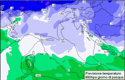Il giorno di Pasqua un minimo di bassa pressione andrà ad approfondirsi sul Mar Ligure. Un corposo calo dei geopotenziali renderà il tempo instabile specie al nord e su parte del centro, più riparato il sud. L'aria fredda si addosserà all'arco alpino già questo sabato, facendo un ingresso irruento sul paese soprattutto lunedì 9, Pasquetta.
